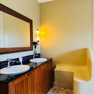 Palumbo Mnemba View Resort is set along a pristine white-sand beach, offering guests a tranquil environment with beach umbrellas and sunbeds for relaxation. The property is surrounded by lush tropical gardens, ensuring privacy and comfort for guests.